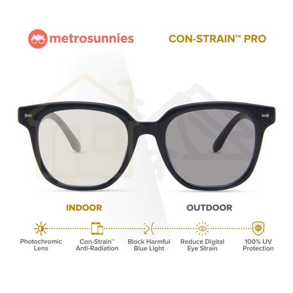 MetroSunnies Percey Specs (Black) Con-Strain Anti Radiation Eyeglasses Women Men Blue Light Eyewear